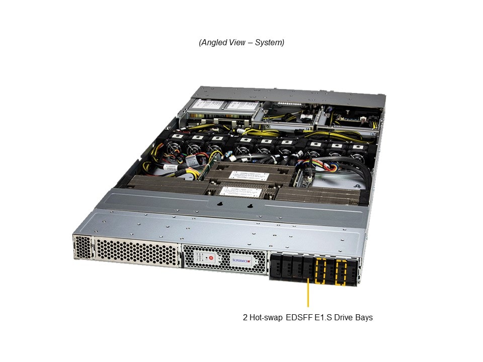 This system currently supports two E1.S drives direct to the processor and the onboard GPU only. Please consult your Supermicro Salesperson for details.