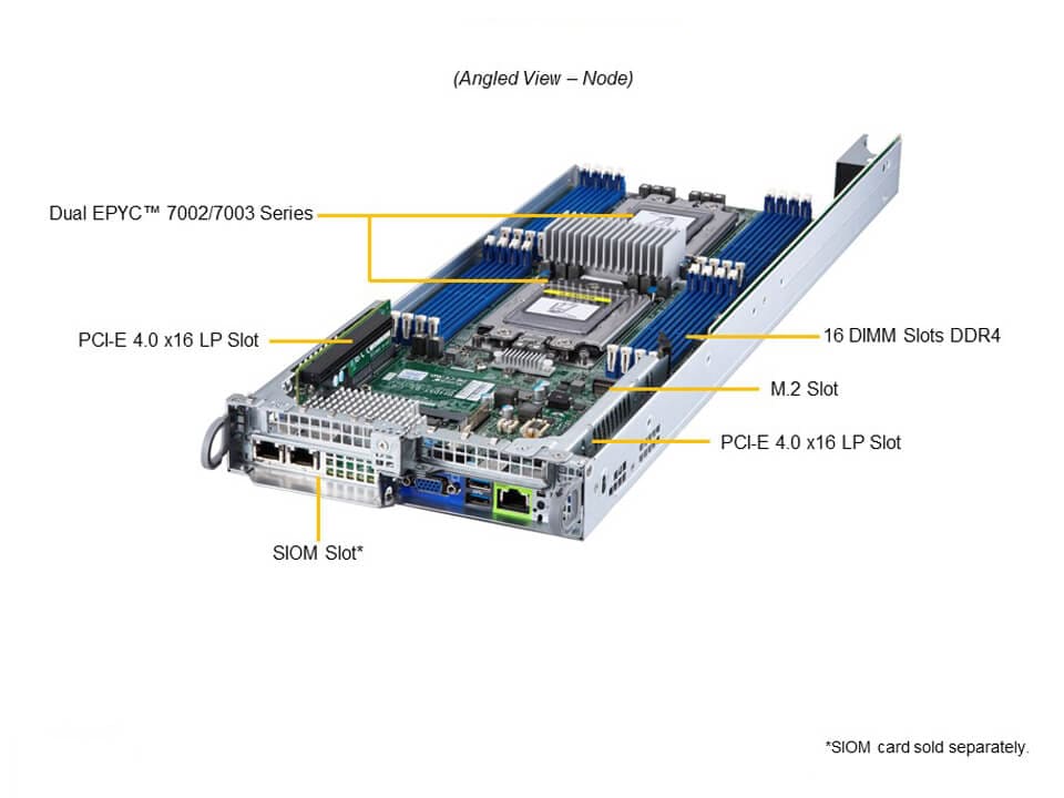 1U Passive Front CPU Heat Sink w/ a 30-mm Wide Middle Air Channel for AMD H11 2U4N Big Twin Series Servers |