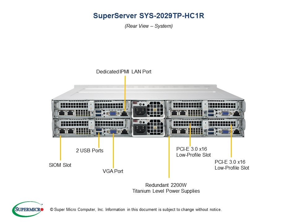Barebone or Complete System requires SIOM or network card installed per node.