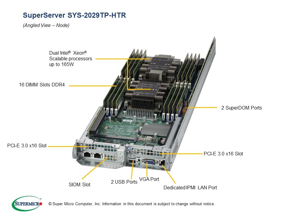 processors (Cascade Lake/Skylake)‡2. 16 DIMMs; up to 4TB 3DS ECC DDR4-2933MHz† RDIMM/LRDIMM, Supports Intel® Optane™ DCPMM††3. 2 PCI-E 3.0 x16 (LP) slots4. Flexible Networking support via SIOM;