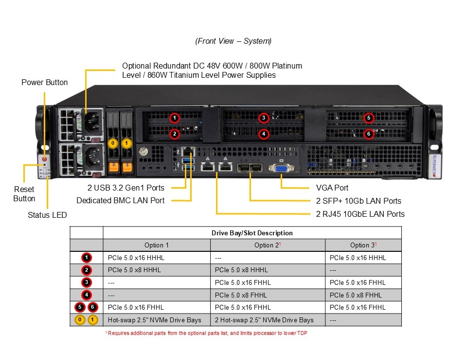 2x 600W Redundant (1 + 1) Typical 90%+ Level (96%) power supplies