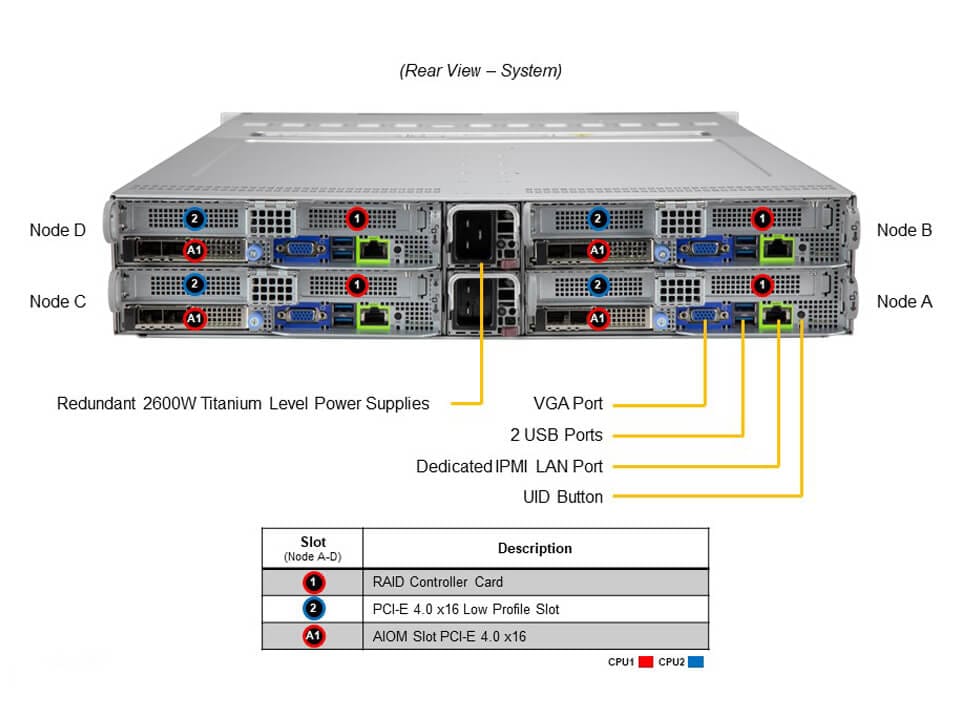 Key FeaturesFour hot-pluggable systems (nodes) in a 2U form factor. Each node supports the following: